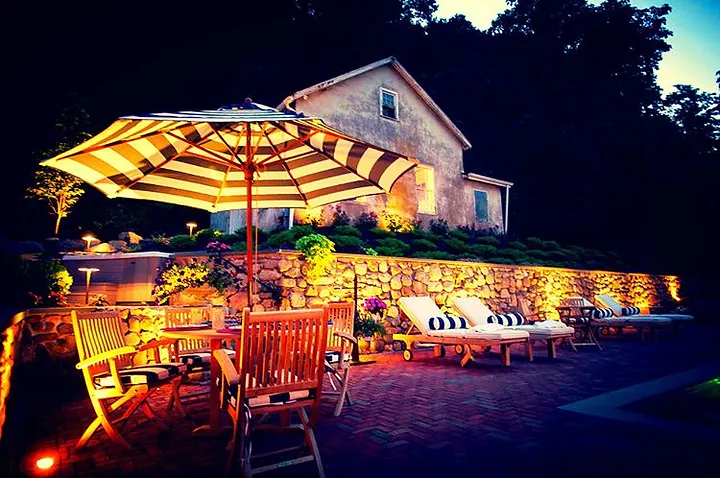 Before Steve designed and built his pool, the new owner use to swim in the Hudson. Some of the design features Steve built into his property include a spa, pool with auto cover, outdoor fire pit, an Argentinean grill for barbecue, night lighting and teak furniture.